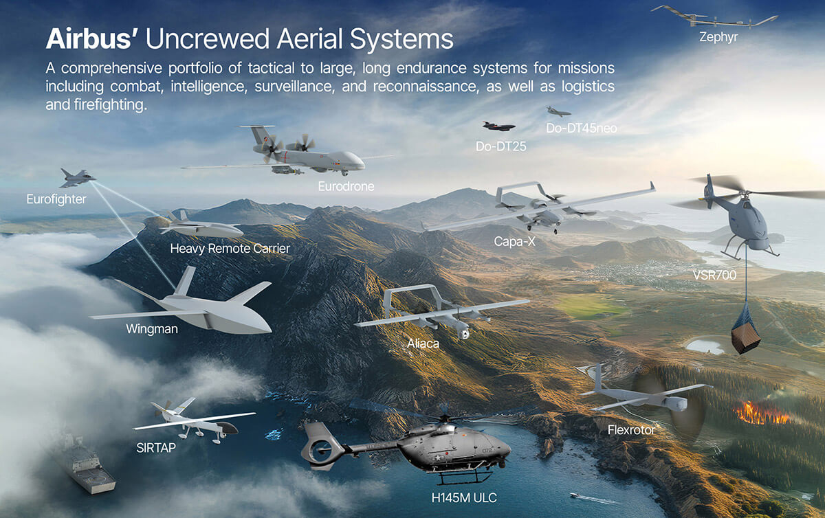 Como complemento a esta cartera consolidada de drones pequeños y medianos, Airbus continúa desarrollando y ofreciendo una amplia variedad de tecnologías y servicios UAS multimisión como parte de su división de Defensa y Espacio, aprovechando su experiencia en soluciones de potencia aérea. Esto abarca desde Eurodrone, el sistema de aeronaves pilotadas remotamente de nueva generación y gran autonomía, diseñado para reforzar la defensa y la soberanía estratégica europeas; el UAS táctico de alta gama SIRTAP, para misiones ISR diurnas y nocturnas sobre tierra y mar; la Estación de Plataforma de Gran Altitud (HAPS) estratosférica solar-eléctrica Zephyr, hasta drones de blancos aéreos.