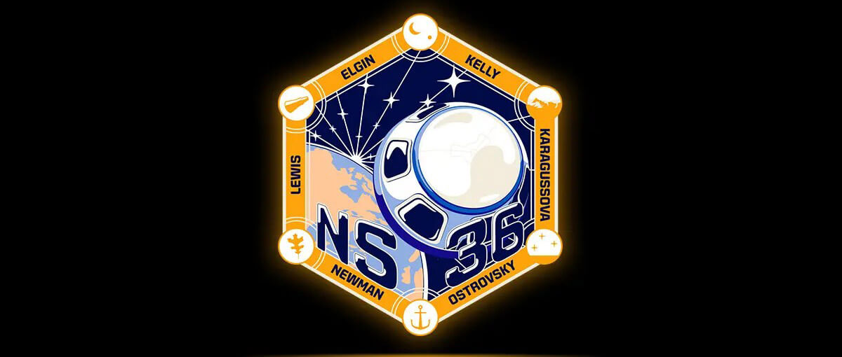 Además, Blue Origin lanzó el escudo de la misión NS-36 y explicó algunos de los símbolos incluidos relacionados con sus triplantes: La Luna y la Tierra simbolizan el futuro de los viajes espaciales y el comercio para Clint Kelly III. Las montañas de Kazajstán tienen un significado importante para Danna Karagussova, recordándole que es parte de algo más grande que ella misma. El cielo estrellado sobre un campo simboliza el cielo de Ucrania, de donde es Vitalii Ostrovsky. El ancla simboliza la pasión de Aaron Newman por la exploración, la investigación científica y la conservación de los océanos. La cápsula Mercury representa el vuelo de Alan Shepard y el sueño de viajar al espacio de Jeff Elgin hecho realidad.