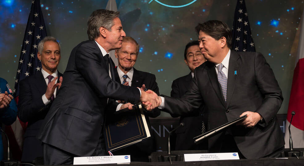 El secretario de Estado de EEUU, Antony J. Blinken, y el ministro de Relaciones Exteriores de Japón, Hayashi Yoshimasa, firmaron el acuerdo en nombre de ambos países. “El futuro del espacio es colaborativo”, dijo Blinken. “A través de este acuerdo, nuestras naciones han fortalecido nuestra asociación en el espacio y aquí en la Tierra. Iremos más lejos y aprenderemos aún más juntos”.