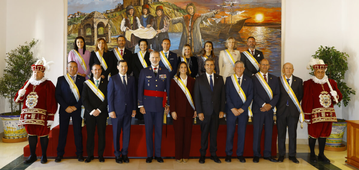 Finalizada la visita a la exposición, el Rey se asomó al balcón del consistorio, desde donde saludó a los vecinos de Palos de la Frontera. Hace 25 años, el 22 de enero de 2001, Don Felipe siendo Príncipe de Asturias, asistió en Palos de la Frontera al 75 aniversario del vuelo “Plus Ultra”, participando igualmente en los actos institucionales organizados para recordar aquella efeméride histórica.