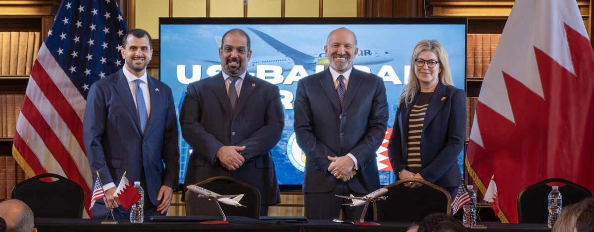 El ministro de Finanzas y Economía Nacional de Bahréin, Shaikh Salman bin Khalifa Al Khalifa, y el secretario de Comercio de EEUU, Howard Lutnick, se unieron a la presidenta y directora ejecutiva de Boeing Commercial Airplanes, Stephanie Pope, y al presidente de Gulf Air Group, Khalid Taqi, para presenciar la firma. La aerolínea de bandera de Bahréin aumentará su flota compuesta exclusivamente por 787 aviones de fuselaje ancho añadiendo hasta 18 aviones 787 Dreamliners a su flota de fuselaje ancho.