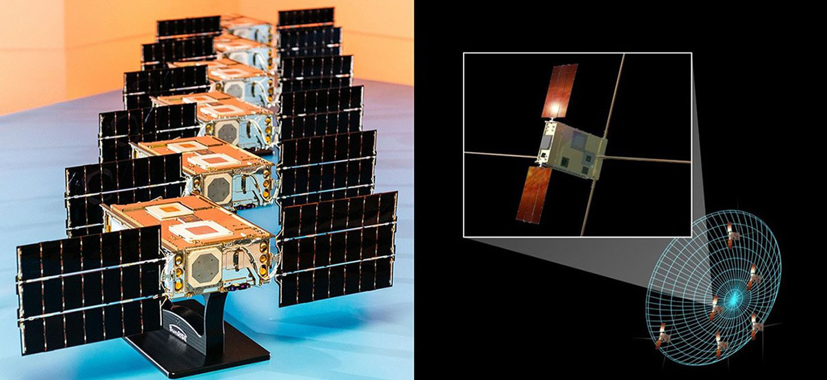 SunRISE, una constelación de seis pequeños satélites, cada uno del tamaño de un horno tostador, funcionará como un gran radiotelescopio de unos 10 kilómetros de ancho, transmitiendo datos a la Tierra a través de la Red de Espacio Profundo de la Nasa.