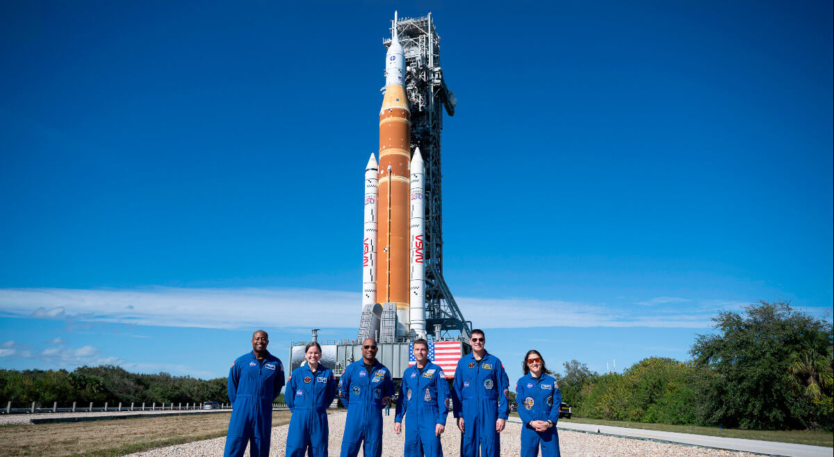 Artemisa II de la Nasa, con destino a la Luna, llegó a la plataforma de lanzamiento. Fuente: Nasa