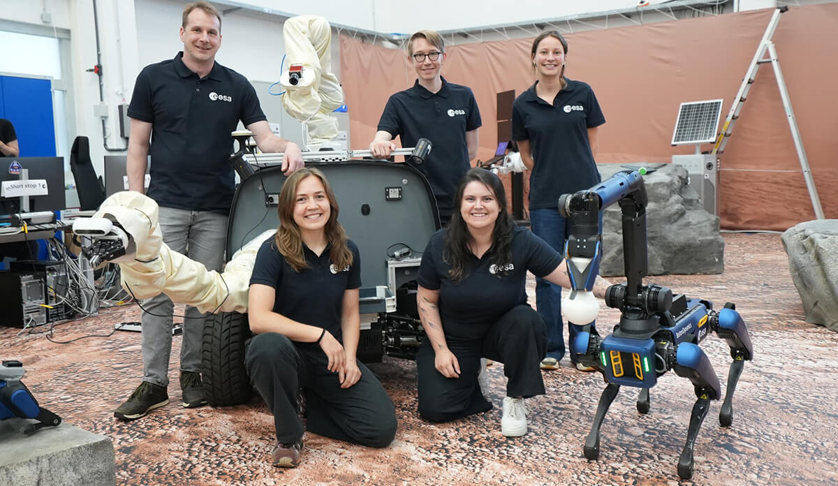 Un equipo de robots ha explorado este verano un paisaje marciano simulado en Alemania, guiados remotamente por un astronauta a bordo de la Estación Espacial Internacional (ISS). Esta fue la cuarta y última sesión del experimento Surface Avatar, una colaboración entre la ESA y el Centro Aeroespacial Alemán (DLR) para desarrollar cómo los astronautas pueden controlar equipos robóticos para realizar tareas complejas en la Luna y Marte.
