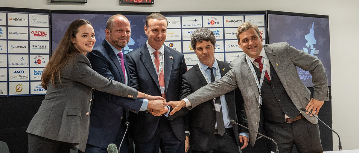 El acuerdo se firmó en la Base Aérea Jean Offenberg de Florennes durante una ceremonia organizada para conmemorar la llegada del primer F-35 de Bélgica, en presencia de David Clarinval, viceprimer ministro y ministro de Empleo y Economía, y Theo Francken, ministro de Defensa.